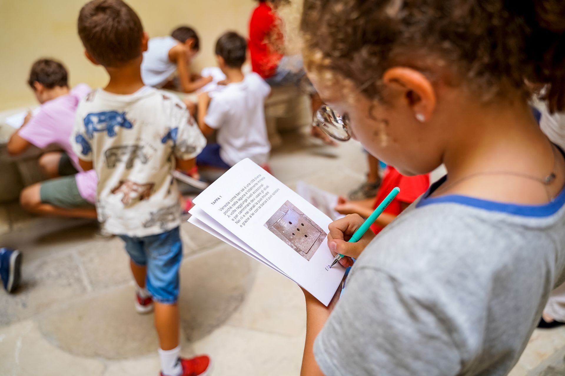 Il camp di fine estate inizia con una caccia al tesoro itinerante tra le sale di Ca’ Rezzonico, alla scoperta degli elementi simbolo di Venezia nascosti tra arredi, dipinti e spazi del museo. Questa divertente attività inclusiva si concluderà in laboratorio con la realizzazione di un lapbook dedicato alla città più bella del mondo, arricchito anche da buone pratiche per diventare visitatori più consapevoli e rispettosi dell’ambiente, delle bellezze artistiche e delle tradizioni di Venezia.