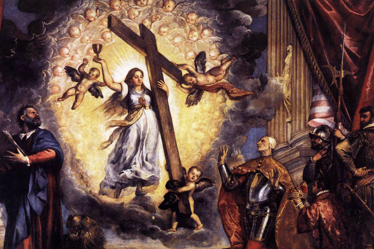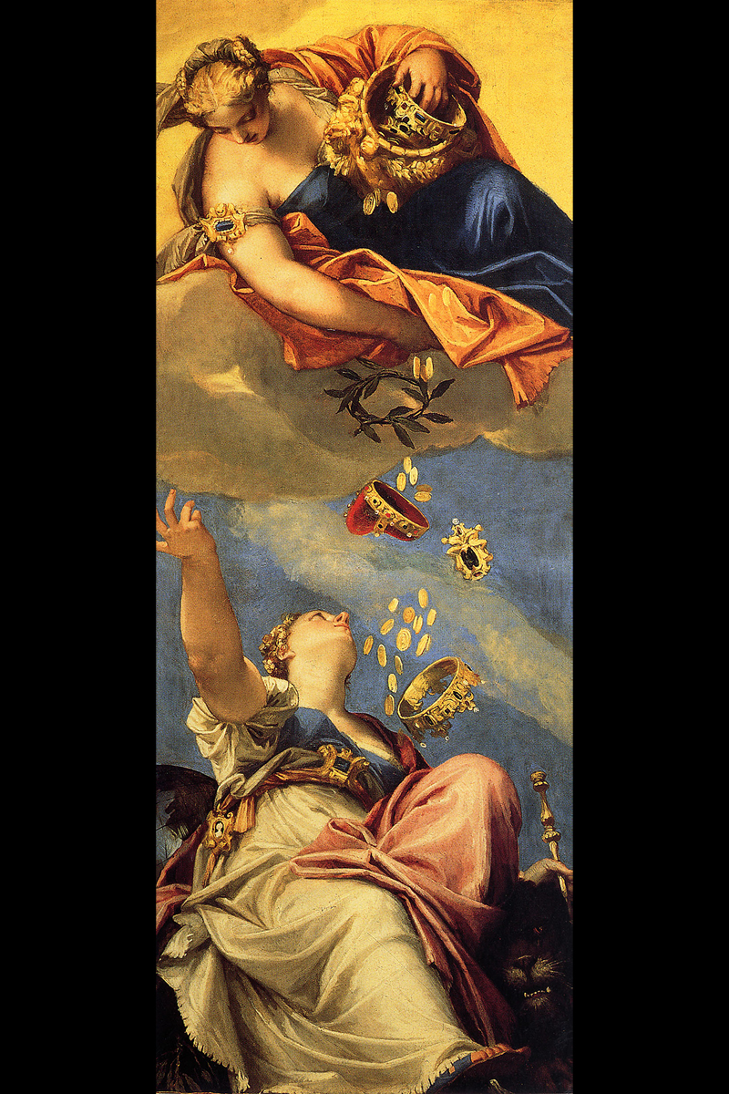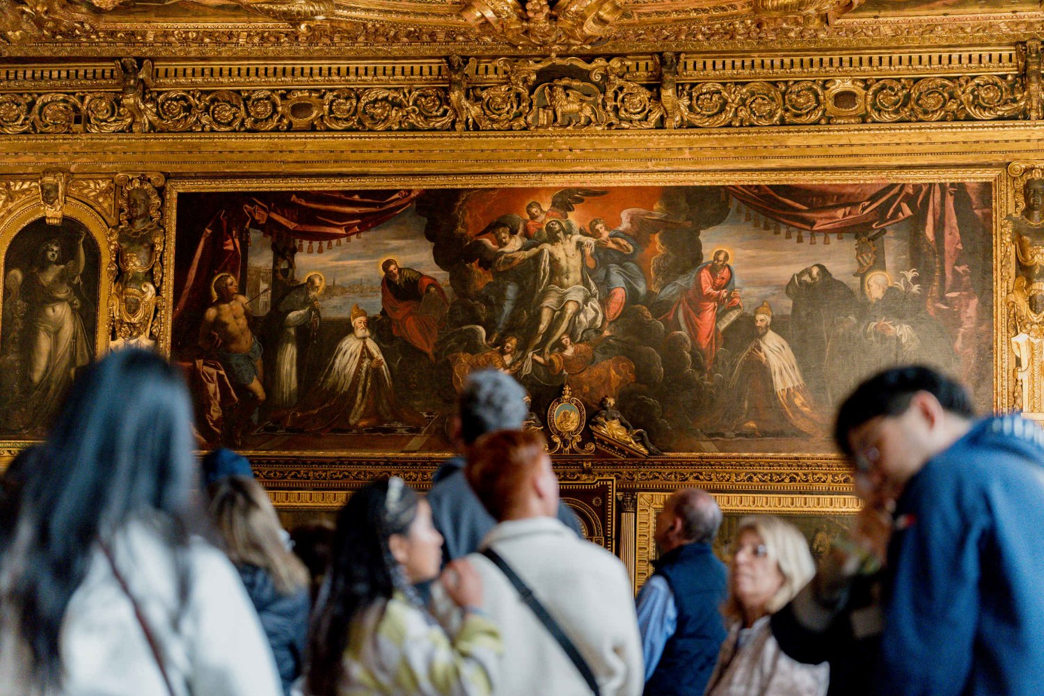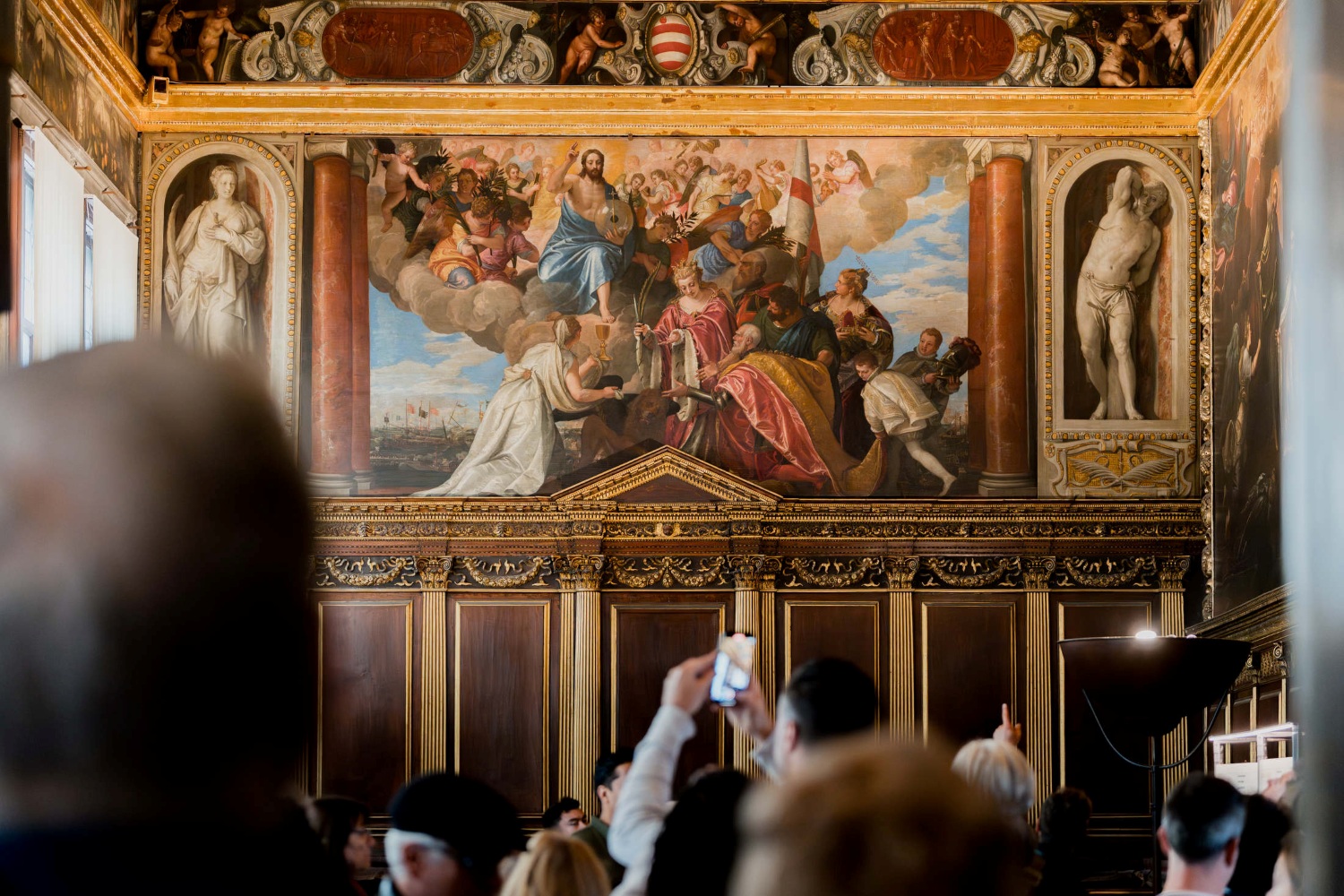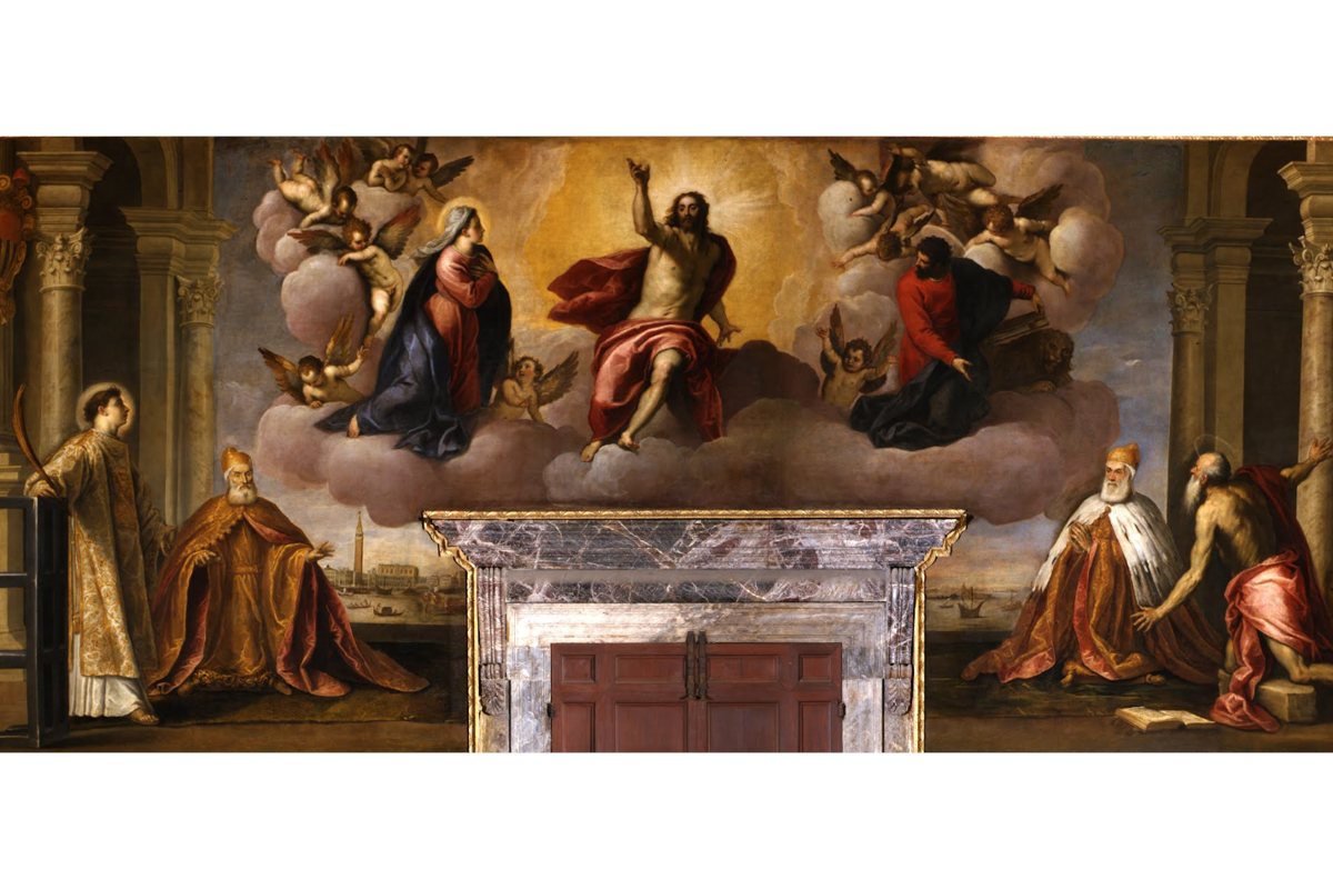 La grande tela posta sopra il Tribunale, ancora di Paolo Veronese, celebra la vittoria di Venezia nella battaglia di Lepanto del 1571.