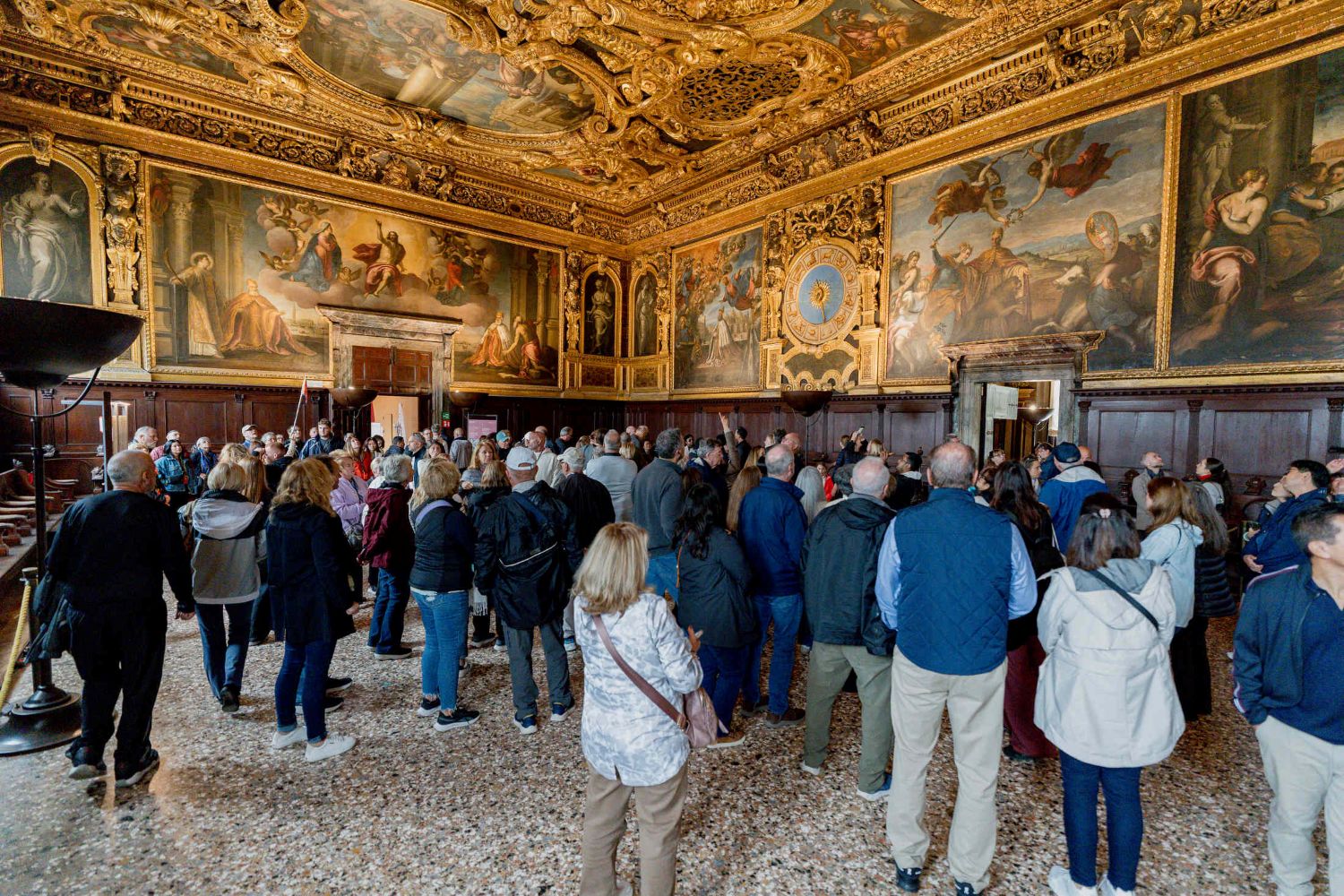 Da questa sala si può accedere all’Armeria e poi alle Prigioni Nuove, al di là del Ponte dei Sospiri oppure scendere subito lungo la scala dei Censori per proseguire, al primo piano, il percorso delle Sale Istituzionali.